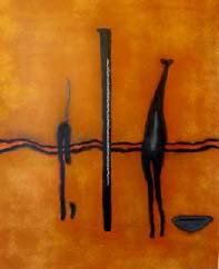 We were commissioned by Cathy Brynner, wife of the late actor Yul Brynner, to design and build works that related to movement and notions of the families migrational history for the dining room of her New York City apartment. We created two large drawings, each on opposite ends of her dining room table. These drawings were to complement three hand carved `pillars' of red cedar placed in and around the dining room and varying in height from five to seven feet. Each column was to contain objects that related to the families migrational history. Unfortunately Mrs. Brynner passed away before the three sculptural pieces were carved.